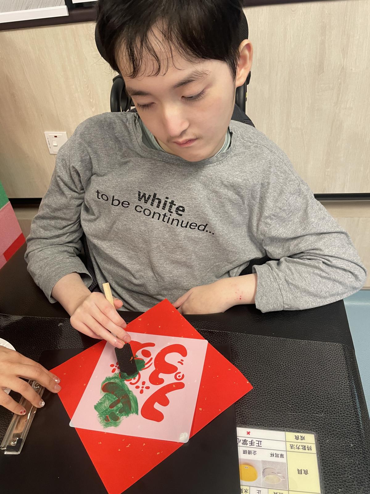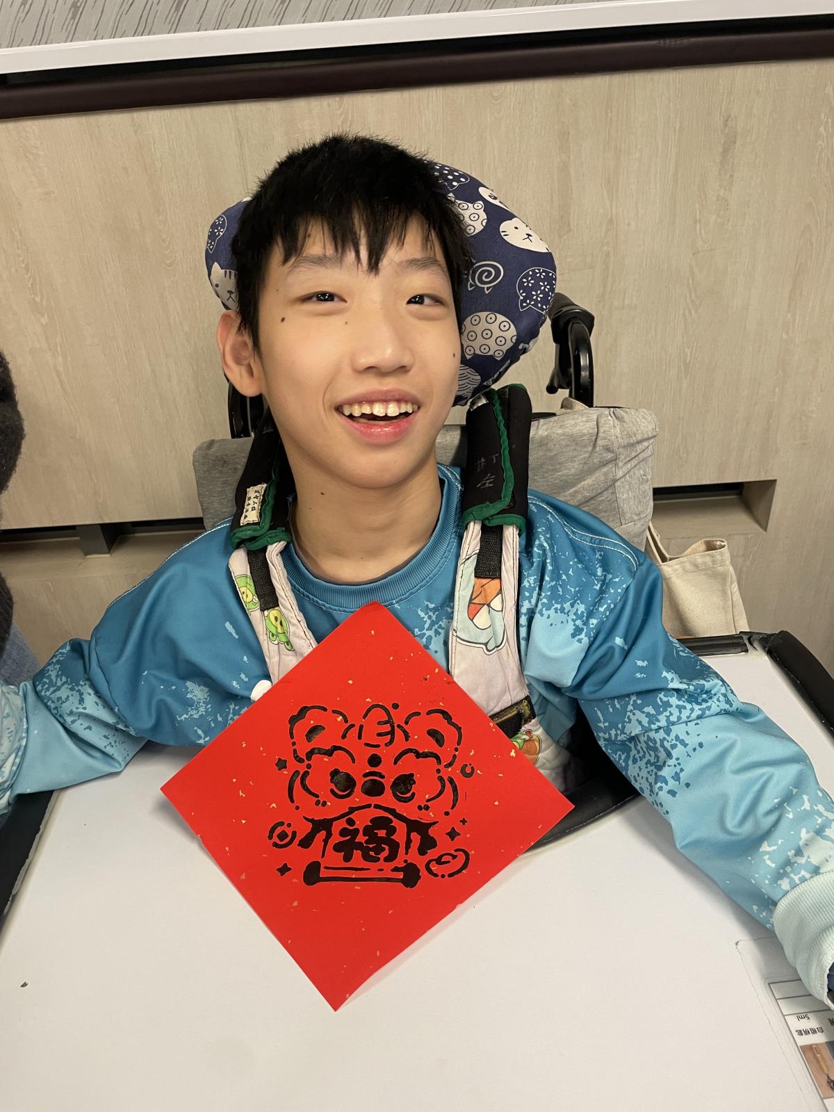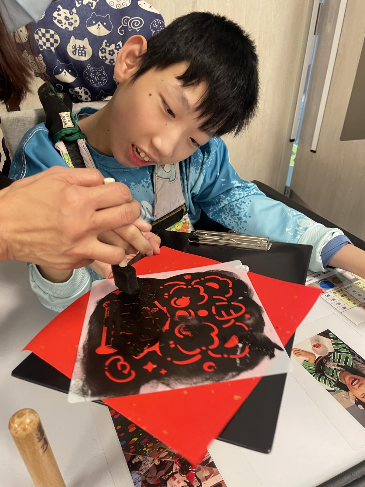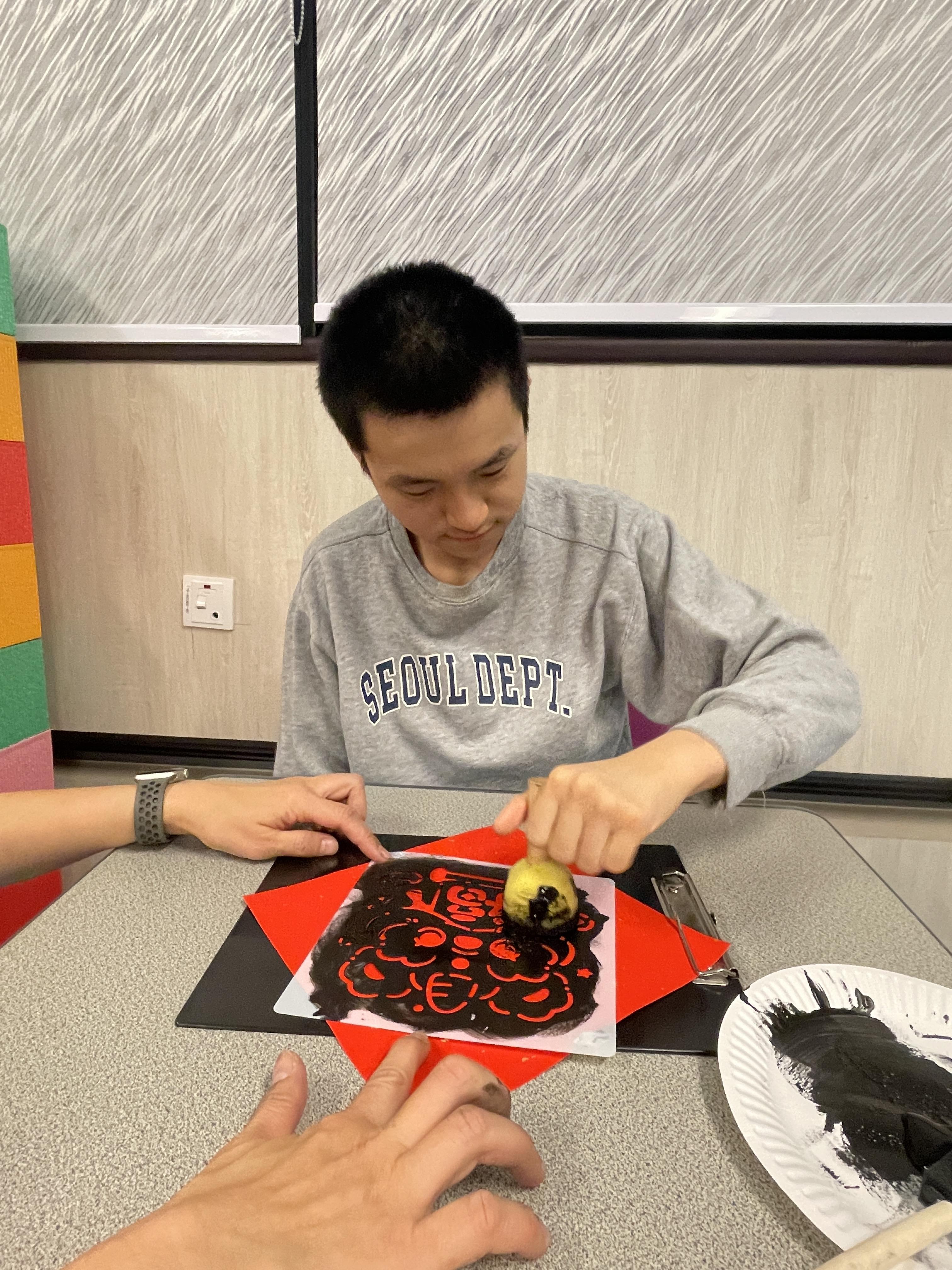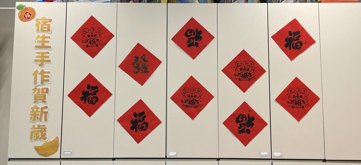 在農曆新年前,我們與宿生一起製作賀年拓印揮春。製作過程簡單,宿生們都感到開心,看到自己的揮春作品更是充滿滿足感。我們將揮春張貼在顯眼的位置,作為佈置之用,為宿舍增添了不少節日氣氛。