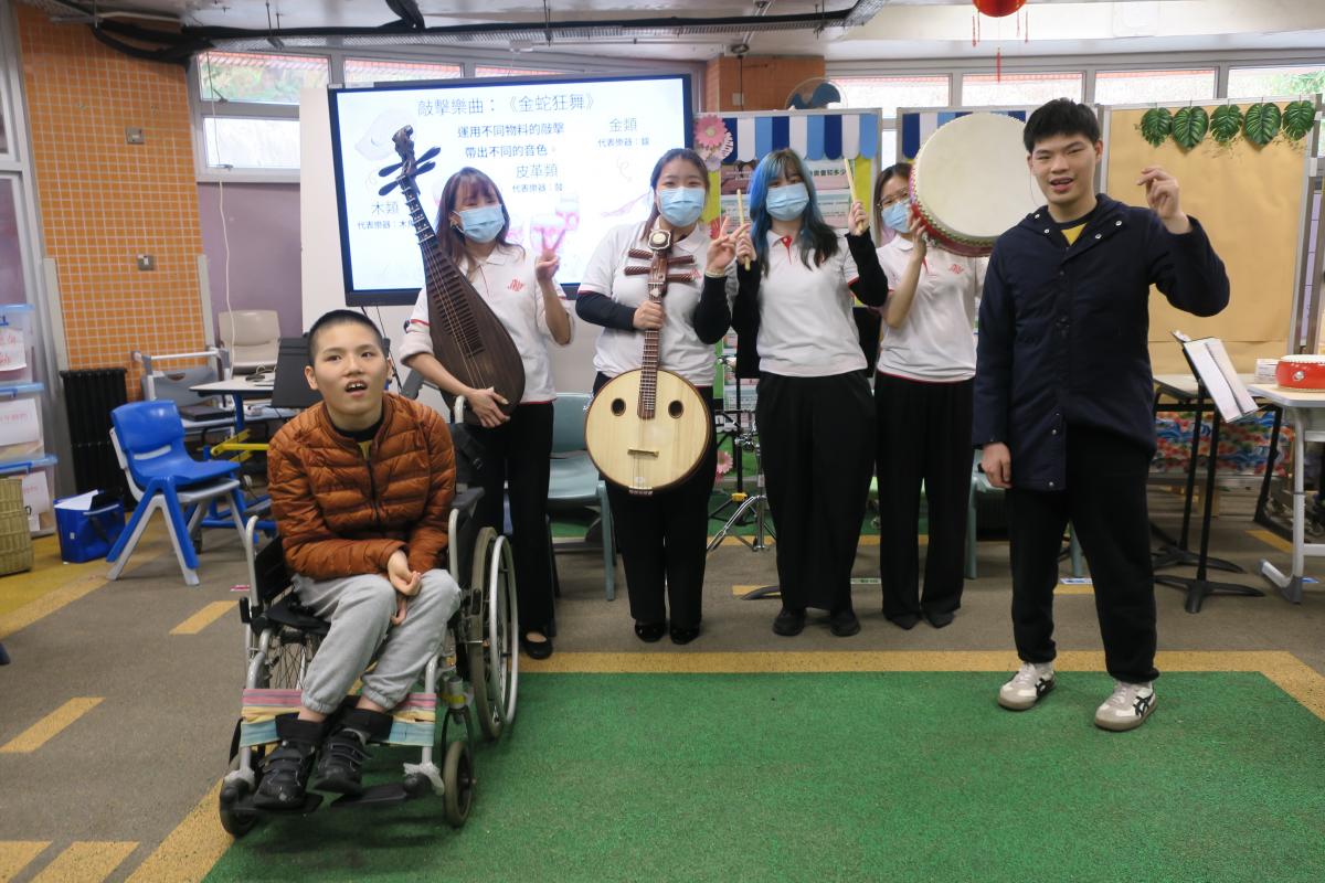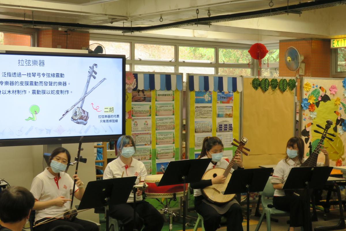 在2026年2月5日,本校邀請了一支中樂隊來校舉行中樂推廣音樂會。師生們透過欣賞樂師演奏的「吹、彈、拉、打」中國樂器,加深了對中國傳統樂器演奏技法的認識。隨後,學生們與台上的樂師一同演奏傳統樂曲,推廣中華文化,培養國民身份認同,大家都樂在其中!